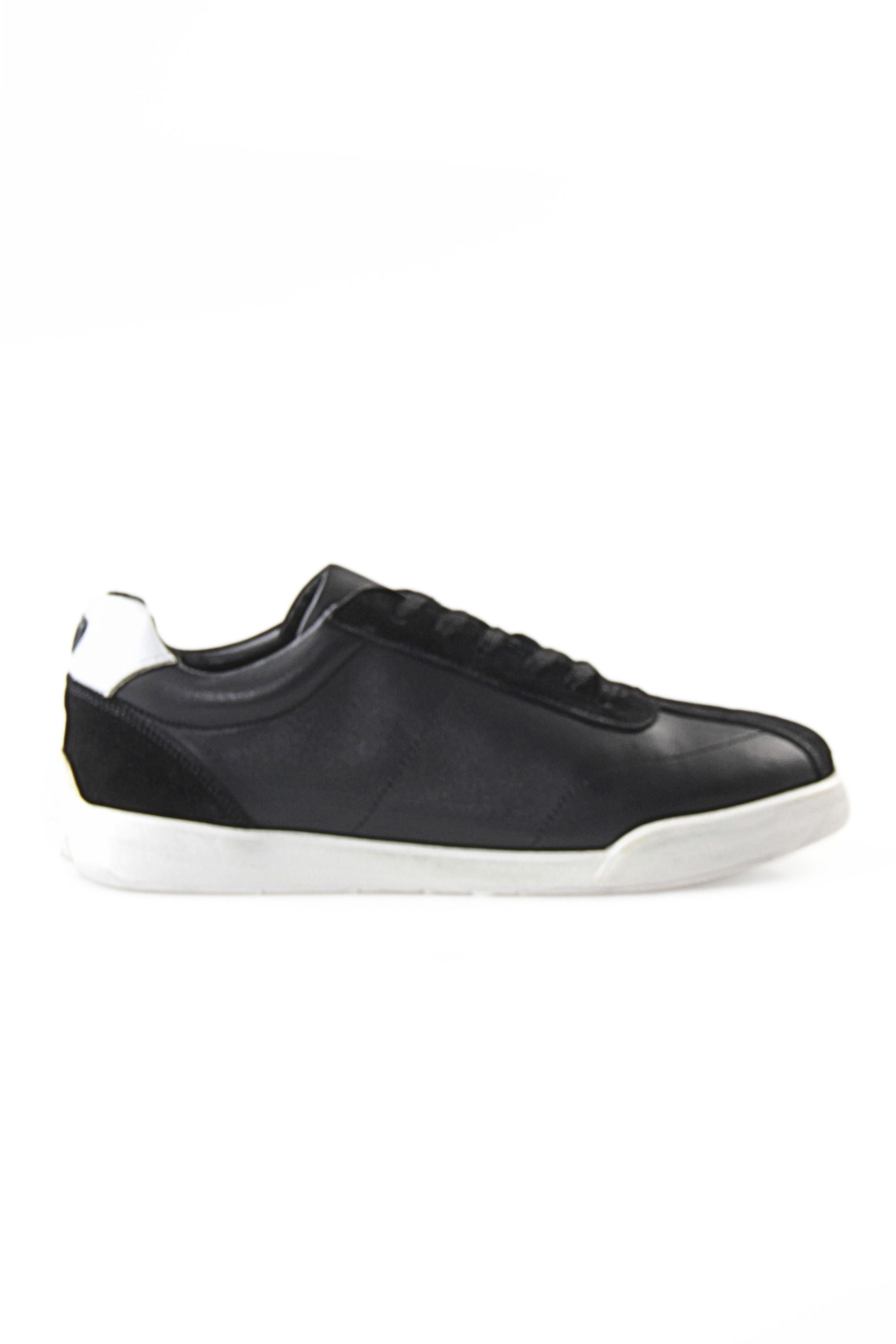 Tripy Hakiki Deri Erkek Bağcıklı Süet Detaylı Siyah Sneaker James